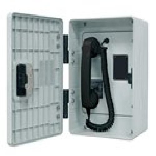 High-Impact, Glass Reinforced Polyester Housing. NEMA 3R Weatherproof Rating. Anti-Corrosive Enclosure. Non-Moveable Hookswitch. Volume control handset. Noise canceling microphone. 6' Hytrel® Cord. Extreme Operating Temperature Range -40°C (-40°F) to +60°C(+140°F). FCC & IC Certified. UL60950 Listed. Hearing Aid Compatible.