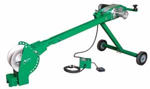 Maximum Pulling Force: High Speed 2,000 lbs. (909 kg) Low Speed 4,000 lbs. (1,818 kg) Continuous Pulling Force: Low Speed 3,000 lbs. (1,364 kg) High Pulling Speeds: No Load 26 fpm(8 mpm) 2,000 lbs. (909 kg) 20 fpm (6 mpm) Low Pulling Speeds: No Load 13 fpm (4 mpm) 2,000 lbs. (909 kg) 10 fpm (3 mpm) Pulling Rope: 9/16' diameter double braided composite (16,000 lbs. minimum breaking strength) Conduit Size: 2' to 4' Weight: 175 lbs. (80kg) Drive Motor: 1-1/4 hp, 120 VAC, 60 Hz Electrical Plug: 120 V, 15 Amp Force Gauge: Standard Foot Switch: Standard Standard Boom Extension: 8' (2.4 m) maximum Optional Long Boom Extension: 12' (3.6 m) maximum