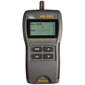The 33-771 Ideal Cable Tester provides simple, 4-button testing and verification for voice, data and video wiring requirements in both residential and commercial environments. Test coax & UTP/STP (RJ45) CAT5 wiring for continuity, shorts, opens, miswires, reversals and split pairs as well as measure cable length and coax mapping. Ideal 33-771 includes the VDV Pro Cable Tester with integrated RJ11/RJ12, RJ45, and F connector inputs, plus eight remotes and terminators. 9V battery & nylon zippered case included.