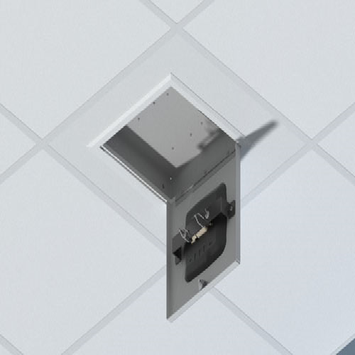 3" deep suspended ceiling enclosure for WAPS, requires tile cutout. Aruba AP225 mounts in door