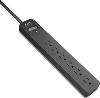 (APC PE610 will ship on this order) PE610 · Power Strip · Surge Protection · 6 outlet · 1,080 joules Protection Working LED Proactively indicates when protection circuitry is working properly. 6 Surge Protected Outlets defend your valuable electronics from dangerous surges: spikes and lightning. Power Switch and resettable circuit breaker. 10-foot Power Cord for your convenience Rear Wall-mount key holes allow for flexible set-up in tight locations