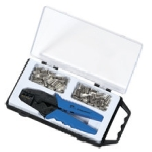 For CATV terminations. Kit includes, Crimpmaster for CATV, 20 F-Connector Crimp-on RG-59 Plugs, 20 F-Connector Crimp-on RG-6 Plugs.