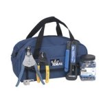Tools needed to cut, strip and terminate RG-6 cable. Kit includes: OmniSeal Compression Tool, Mechanic's Tool Bag, Data T®-Cutter, Coax Stripmaster® Wire Stripper for RG-6, Stripmaster® RG-6 QuadShield Repl Blade, Universal RG-6 Compression Connectors (jar). |