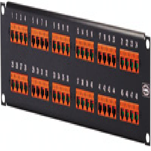 Use Hubbell’s enhanced 100BASE-T patch panels to connect 10/100BASE-T Fast hubs to a Category 5/5e network. The panel features Category 5 modular 50-pin/25-pair interfaces connected via a printed circuit board to 12 two-pair, 8-position, Ethernet wired RJ45 modular jacks. This PS Category 5 performance, modular 50-pin/25-pair connector is compatible with industry-leading 100BASE-TX and 100BASE-T Fast Ethernet hubs.