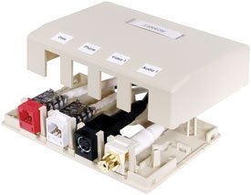 Ideal for open office MUTOA cabling, compact surface mount environments, and retrofits to support data, voice, and multimedia applications. Features adjustable furniture latches to provide an additional mounting option to common ANSI/TIA/EIA standard furniture openings, and solutions requiring fiber. Box bases feature fiber storage posts that can store 1 meter fiber cable after termination.