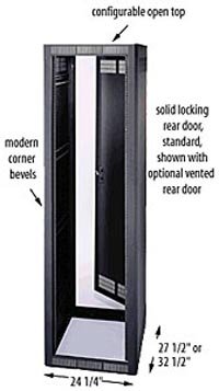 WRK-40SA-27 WRK-40SA-27 40 SPACE (70"),27"DEEP STAND ALONE RACK W/REAR DOOR BLACK <html><ul><li>27-5/8" Outside Depth (25-3/4" Useable)</li><li>Rack Height: 70" (40 Space)</li><li>Overall Height: 76-1/8"</li><li>Fully welded construction, solid sides</li><li>UL Listed in the US and Canada</li><li>2,500 lb. weight capacity</li><li>Seismic certified (UBC Zone 4) for protecting 1,000 lbs. of essential equipment when used in conjunction with our WRK-Z4 brackets</li><li>Generous 24.25" OD width provides room for cables</li><li>1/2", 3/4", 1" and 1-1/2" electrical knockouts found on removable split rear plates, top knockout plate additionally includes UHF/VHF antenna knockouts</li><li>2 extra-wide pairs of 10-32 threaded rackrail standard</li><li>Rackrail features cable pass-through openings in face</li><li>Laser-cut 1/8" thick internal steel braces for strength</li><li>14-gauge steel tops & bottoms, 16-gauge seamless steel sides</li><li>Grounding stud installed in base</li><li>Configurable open top accepts a number of top options</li><li>Keylocked solid rear door standard</li><li>Finished in a durable black textured powder coat</li></ul></html> Middle Atlantic Products