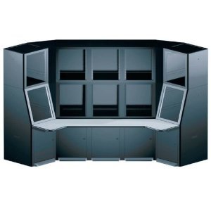 The Middle Atlantic SCQ Convective Series Five-Bay, Two-Wedge, Three-Tier Configuration SCQ-5W2-53TBK (Black) includes (5) SCQ-1427-1217BK consoles, (5) SC3T-1427-1217-12BK top modules and (2) SCW45-1427-1217BK base wedges in a five-bay configuration. Also included are (5) locking front doors and (2) WS245-S18-GOR + (1) WS1-S18-GOC work surfaces (creates single work area), as well as (1) pair of SPNQ3T-1427-1217-12BK top-module, side panels. The sum total is one of the most complete and versatile, console setups on the market. This model is ideal for use in isolating noise created by DVRs, hard-drive arrays and other equipment, which can have detrimental effects on the operator's attention and critical decision making ability.